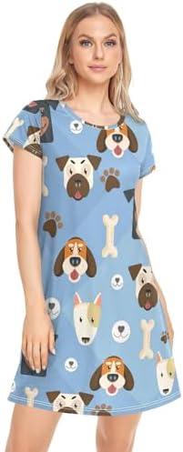 J⁢ JOYSAY Cute Dogs Nightgowns⁢ for ​Women Short Sleeves Sleepwear Soft House Dress ⁣Size S-XXL