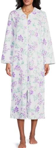 Miss Elaine Women’s Printed Quilt-In-Knit Long Zip Robe