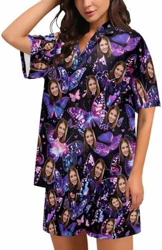 Artsadd Custom Face Pajamas Set for Women Personalized Photo V-Neck 2 Pieces Pajama⁢ Loungewear Sleepwear Short Sets