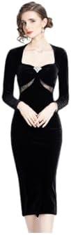 Square Neck Long Sleeve Patchwork Hollow Waist Black Slimming Dress Dress Woman