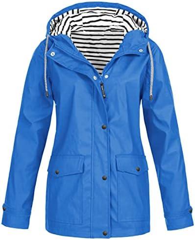 Womens Trench Coat Waterproof Windbreaker Zipper Hoodies Rain Jacket Lightweight Hooded Raincoat