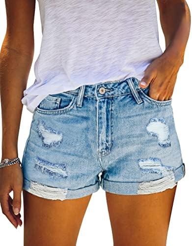 onlypuff Women’s Ripped Mid Waisted Denim Shorts with Pockets