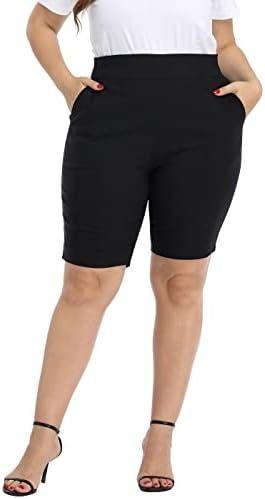 HDE Plus Size Bermuda Shorts Mid Rise 10″ Inseam Pull On Shorts with Pockets