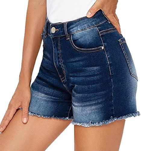VIPONES Women Mid Rise Stretchy Jeans Shorts Frayed Raw Hem Casual Denim Shorts