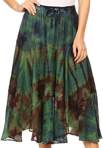 Sakkas Justina Womens Dance Midi Full Circle Tie-dye Skirt with Elastic Waist
