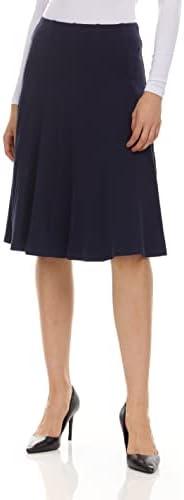 Women’s Ribbed Cotton Panel Knee Length Skirt- Elastic Waist Office Pleated Skirt