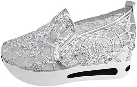 These slip-on sneakers are designed to combine comfort, style, and functionality, making them an essential addition to any summer wardrobe. The lightweight mesh upper provides breathability, ensuring your feet stay cool during warmer months. With a comfortable platform wedge design, these shoes offer added height without sacrificing comfort, making them perfect for casual outings or leisurely walks. The delightful shimmer of rhinestones adds a unique touch, elevating a simple pair of sneakers into a fashionable statement piece that can easily transition from day to night.