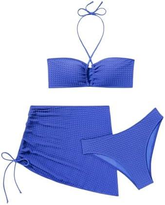 SHENHE Women’s Summer 3 Piece High Waisted Bikini Set Swimsuit Bathing with Cover Up