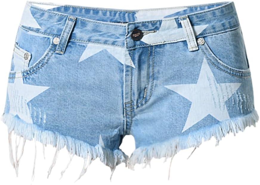 Jean Shorts for Women Low Waisted Printing Denim Shorts Frayed Raw hem Summer Casual Shorts