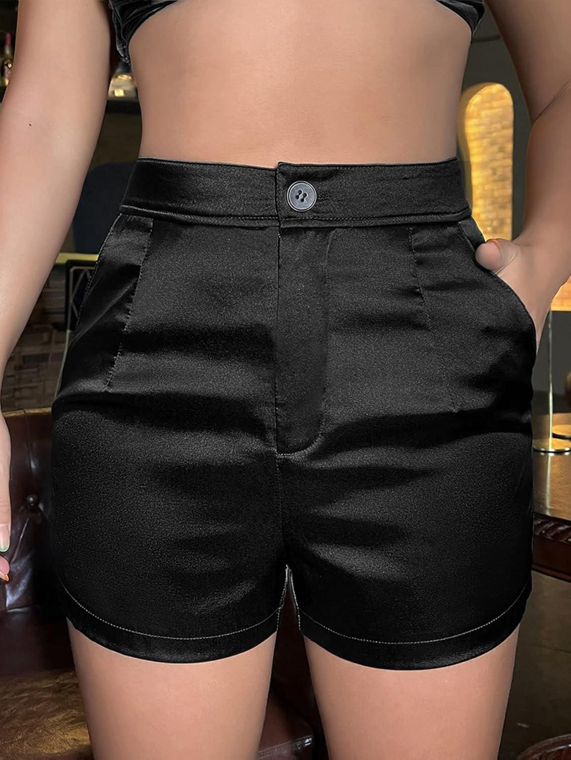 High Waist Slant Pockets Satin Shorts with Excellent Versatility