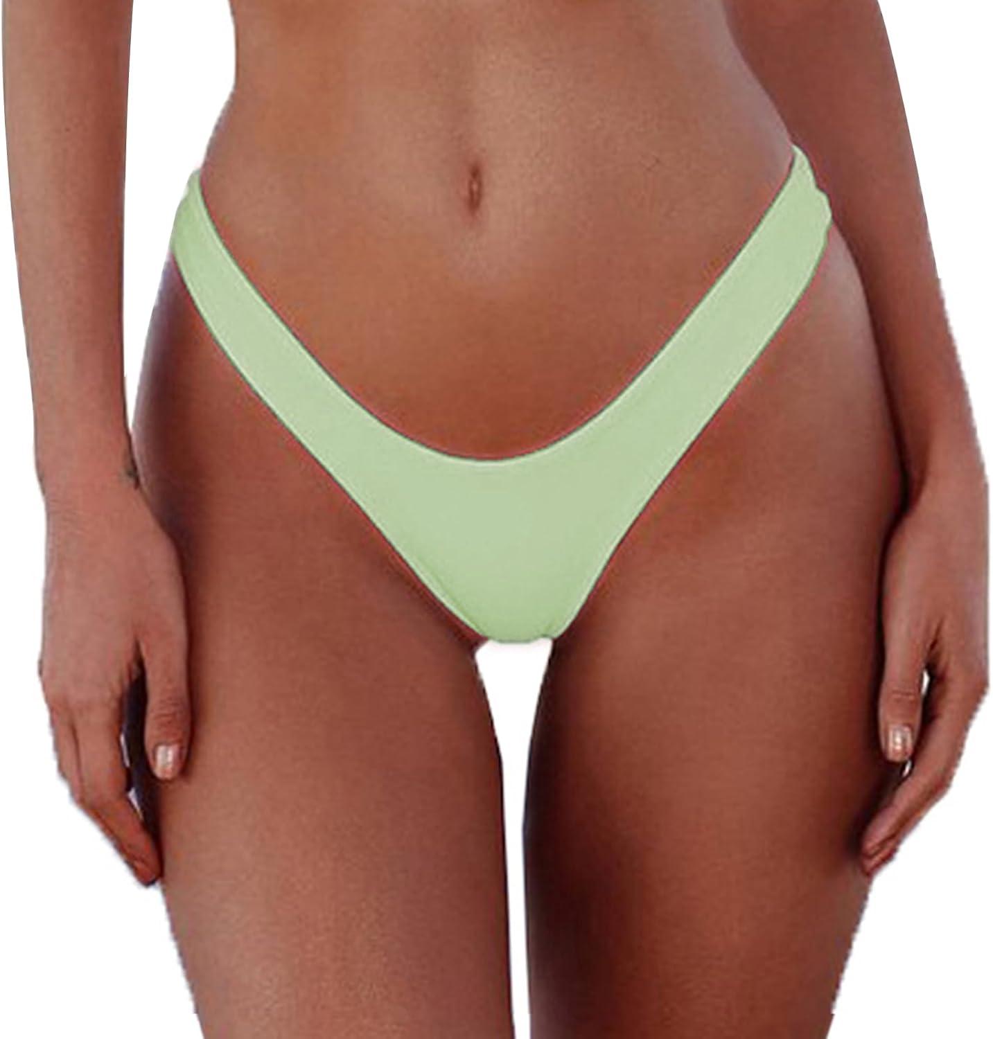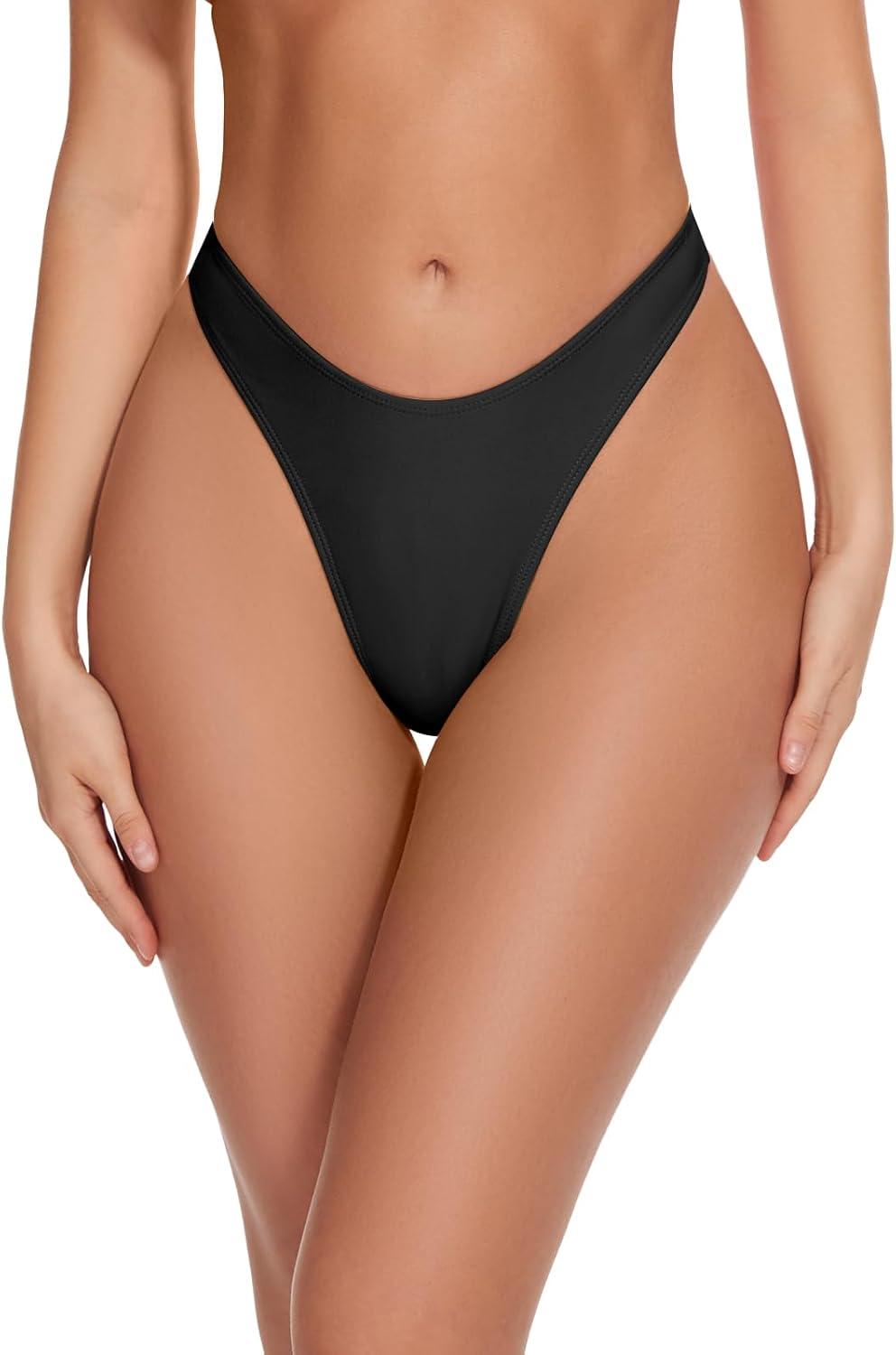 Women’s Sexy cheeky Brazilian Cut Bikini Bottom Solid Low Rise High Leg Thong Swimsuit bottom