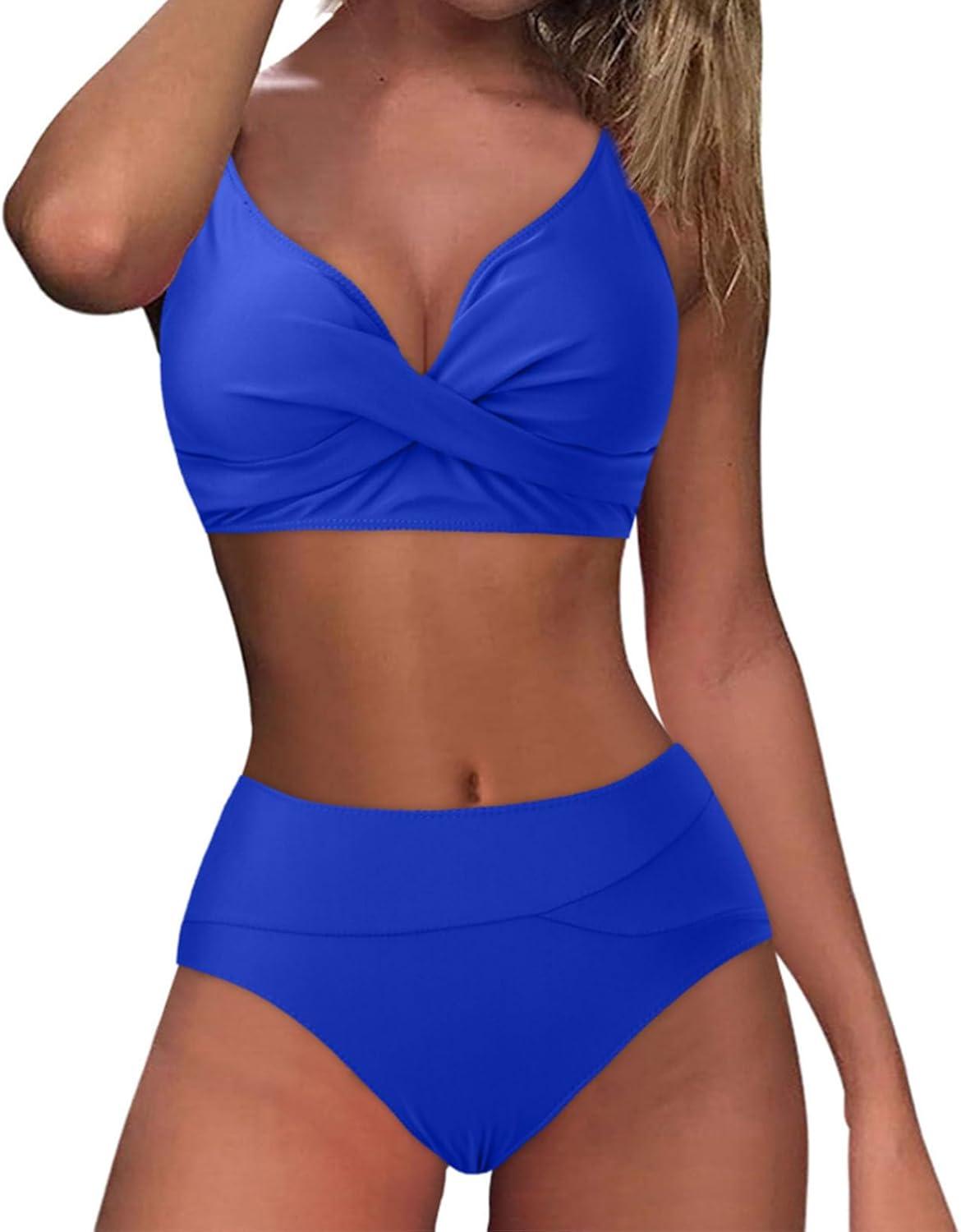 MOSHENGQI Women High Wasited Bikini shoulder Strap 2 Piece High Cut String Swimsuits