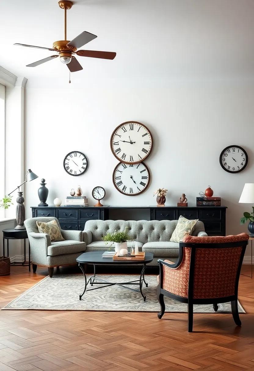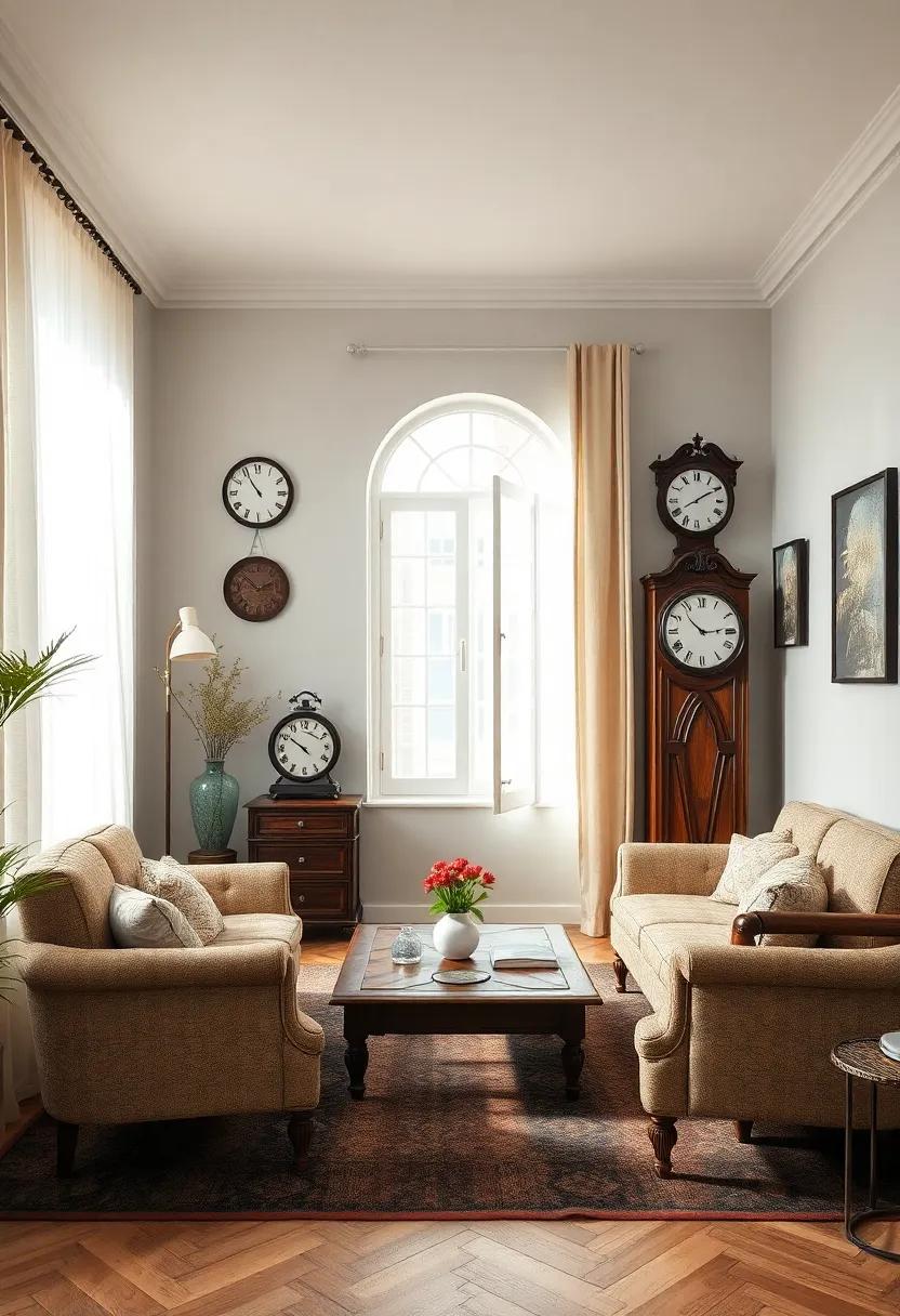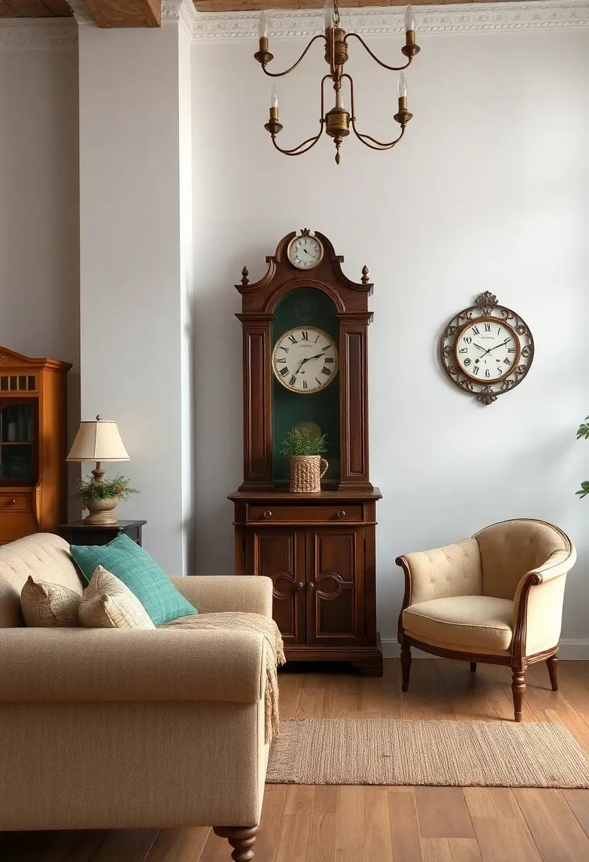 Showcasing Antique Clocks as Focal Points in Living Room Decor