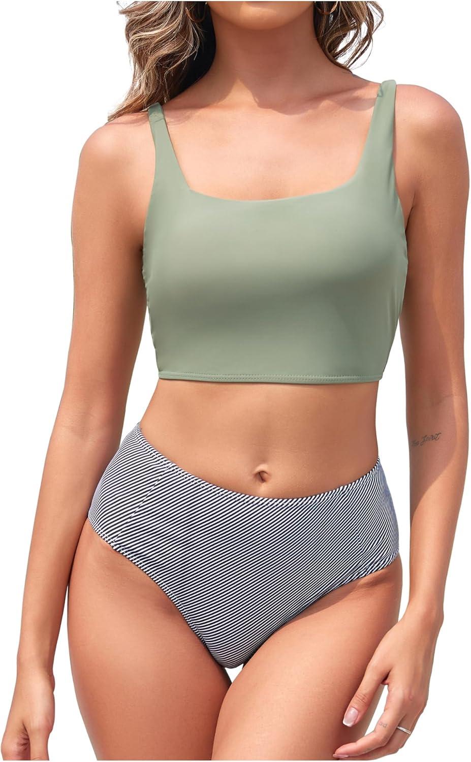 beautyin Women’s Bikini Top Square Neck Swim Top Quick Dry UPF 50+ Padded bathing suit