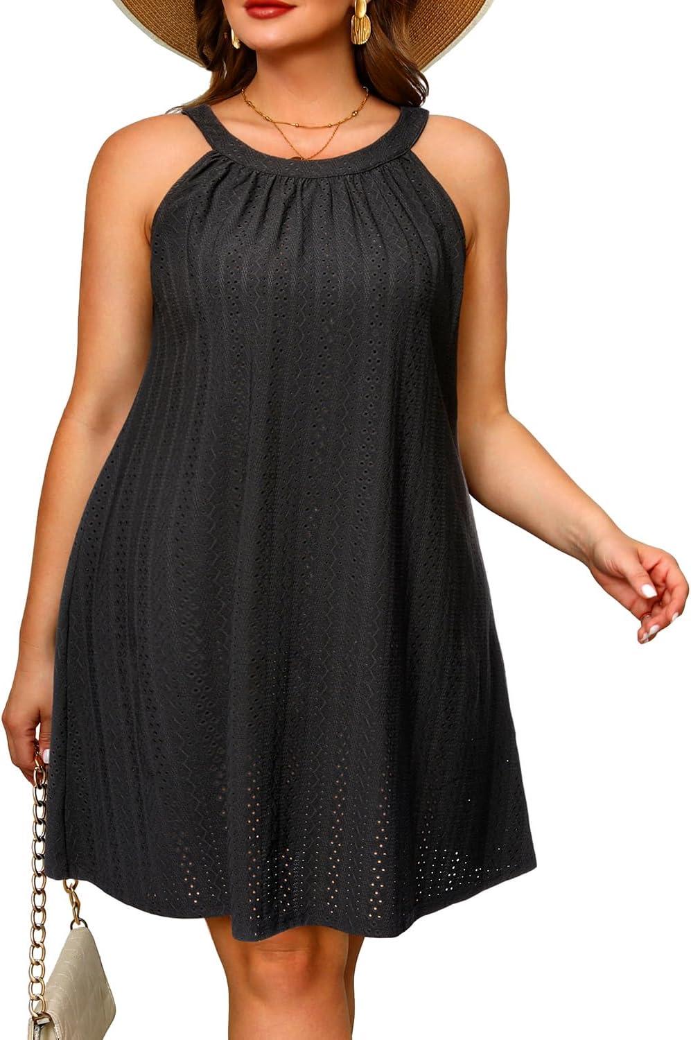 Daci Plus Size Swimsuit cover Ups – Women Halter Hollow out Bathing Suit Beach Coverup Sun-dress