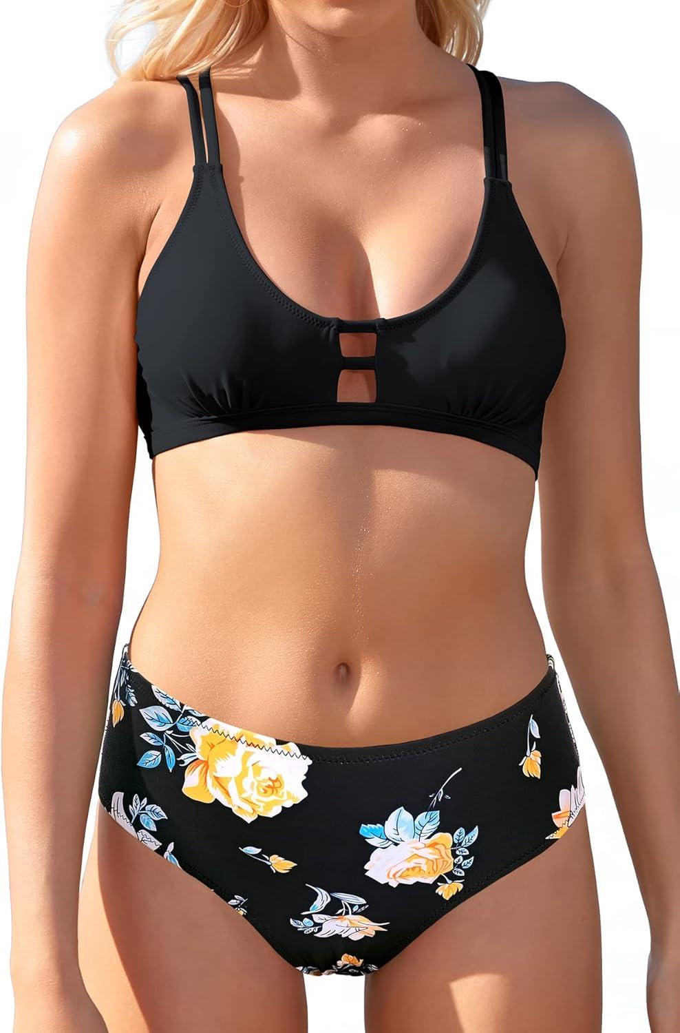 SHEKINI Women High Waist Bikini Cutout Cross Back bathing Suit two Piece Swimsuit