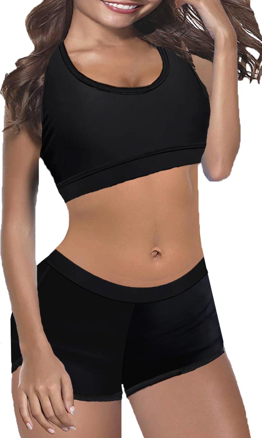 Women’s 2 Piece Bandage Sporty Bathing Suit Scoop Neck Boyshorts Bikini Swimsuit