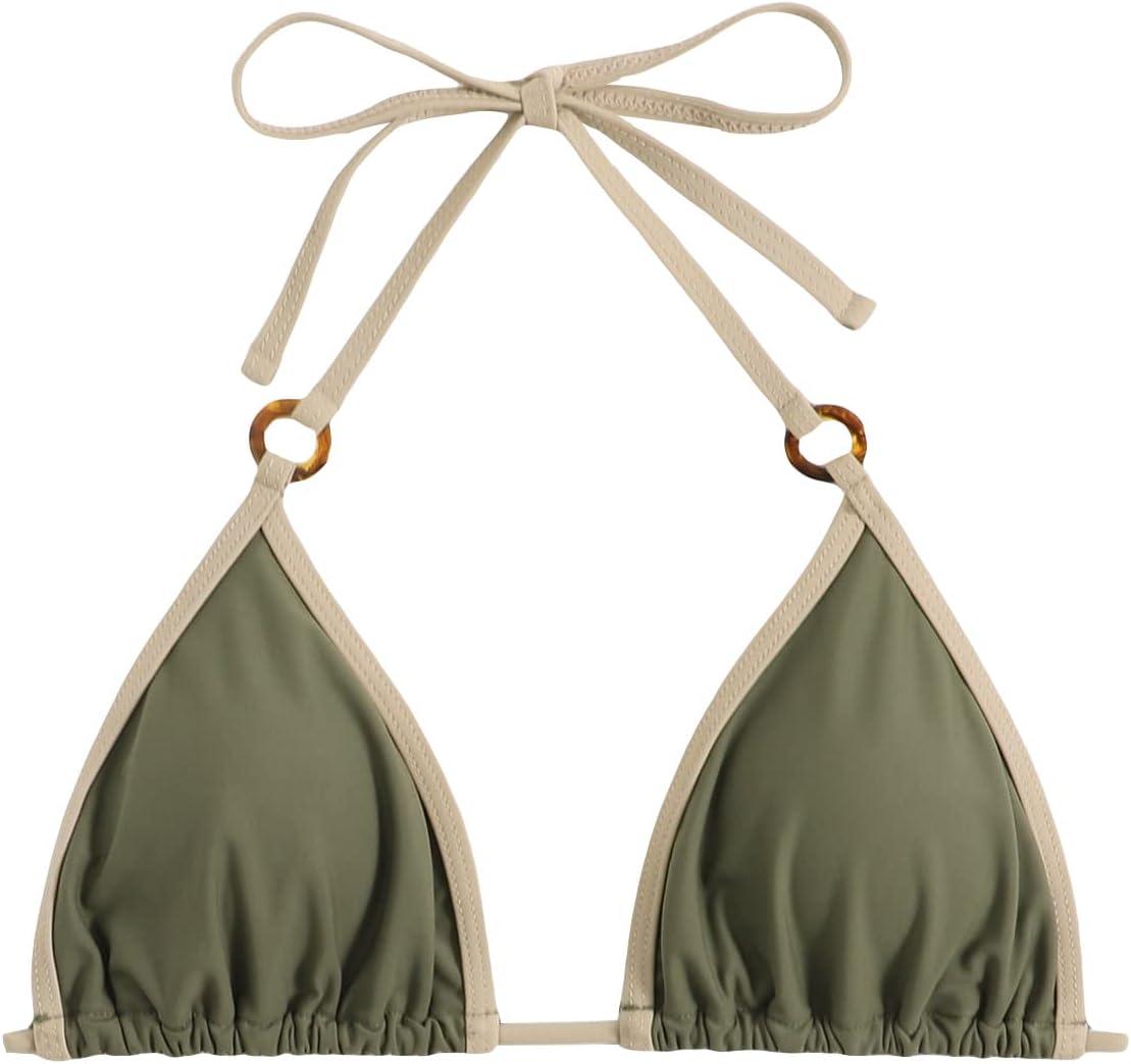 SHENHE Women’s Summer Beach Color Block Bikini Top with Contrast Trim Army Green M