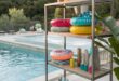 Incorporating shelves around your pool area not only organizes your floats but also enhances the overall ambiance. Shelves serve as both functional storage and decorative elements, elevating the poolside vibe.
