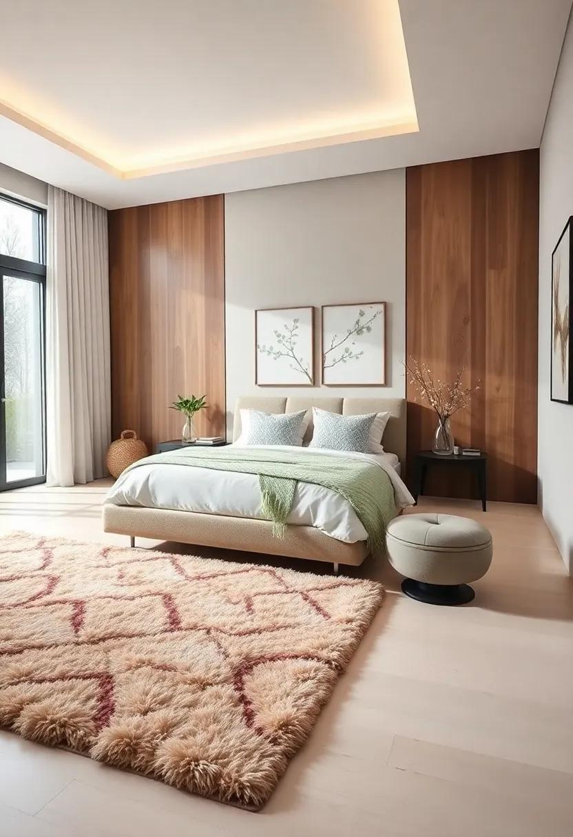 Consider the following aspects when integrating a plush rug into your bedroom design: