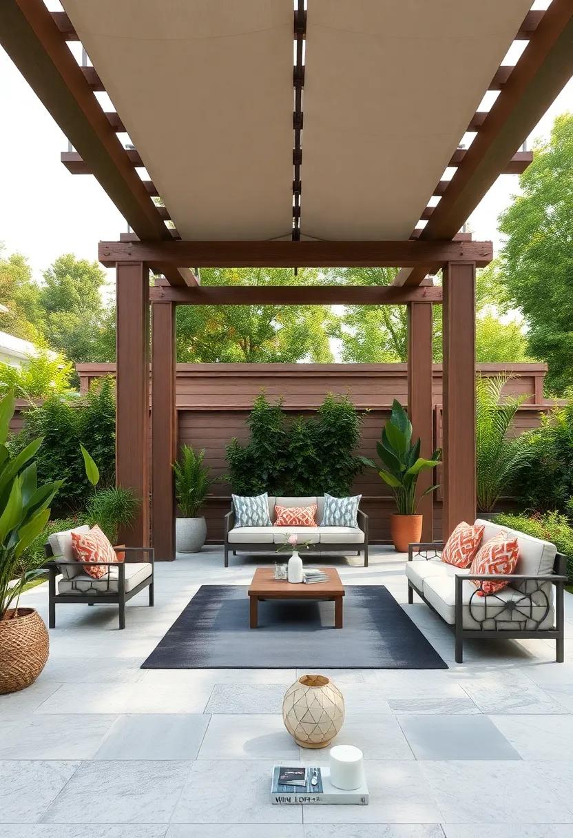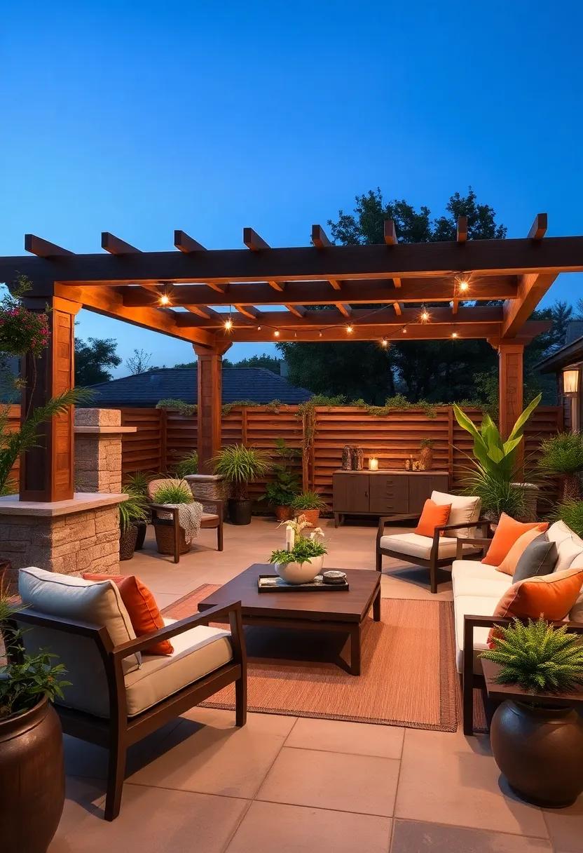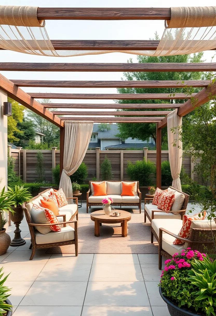 Enhance your outdoor retreat by incorporating draped fabrics and rustic pergolas that create a inviting atmosphere. Picture soft, flowing materials in serene colors gently billowing in the breeze, framing your lounge area and providing a sense of privacy and comfort. These fabrics can vary from sheer curtains that filter sunlight, to heavier textiles that become cozy layers during cooler evenings. Combine these elements with a pergola constructed from reclaimed wood or wrought iron, bringing a touch of natural charm while maintaining a sturdy structure. This harmonious blend encourages relaxation, making your outdoor space a captivating sanctuary.