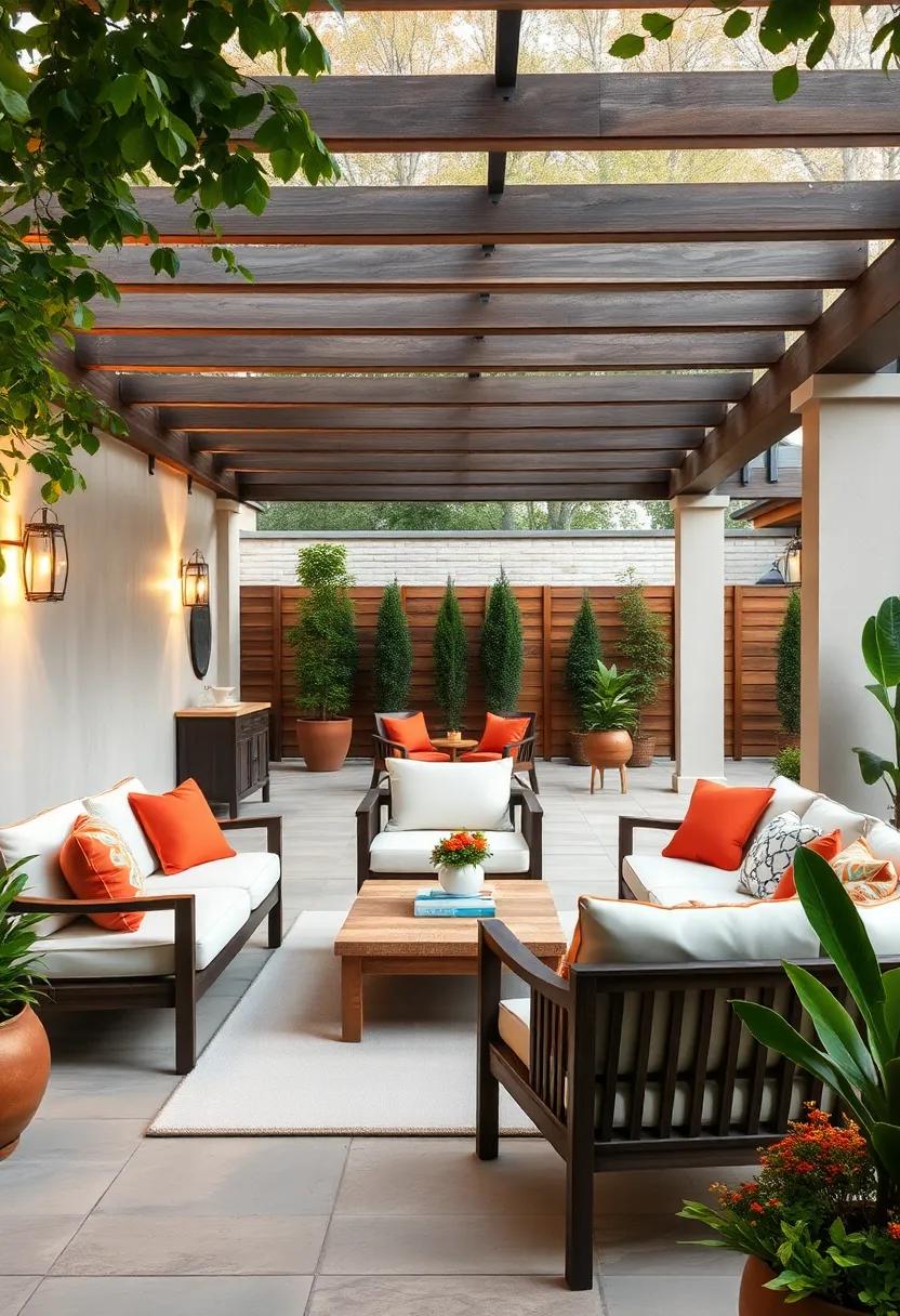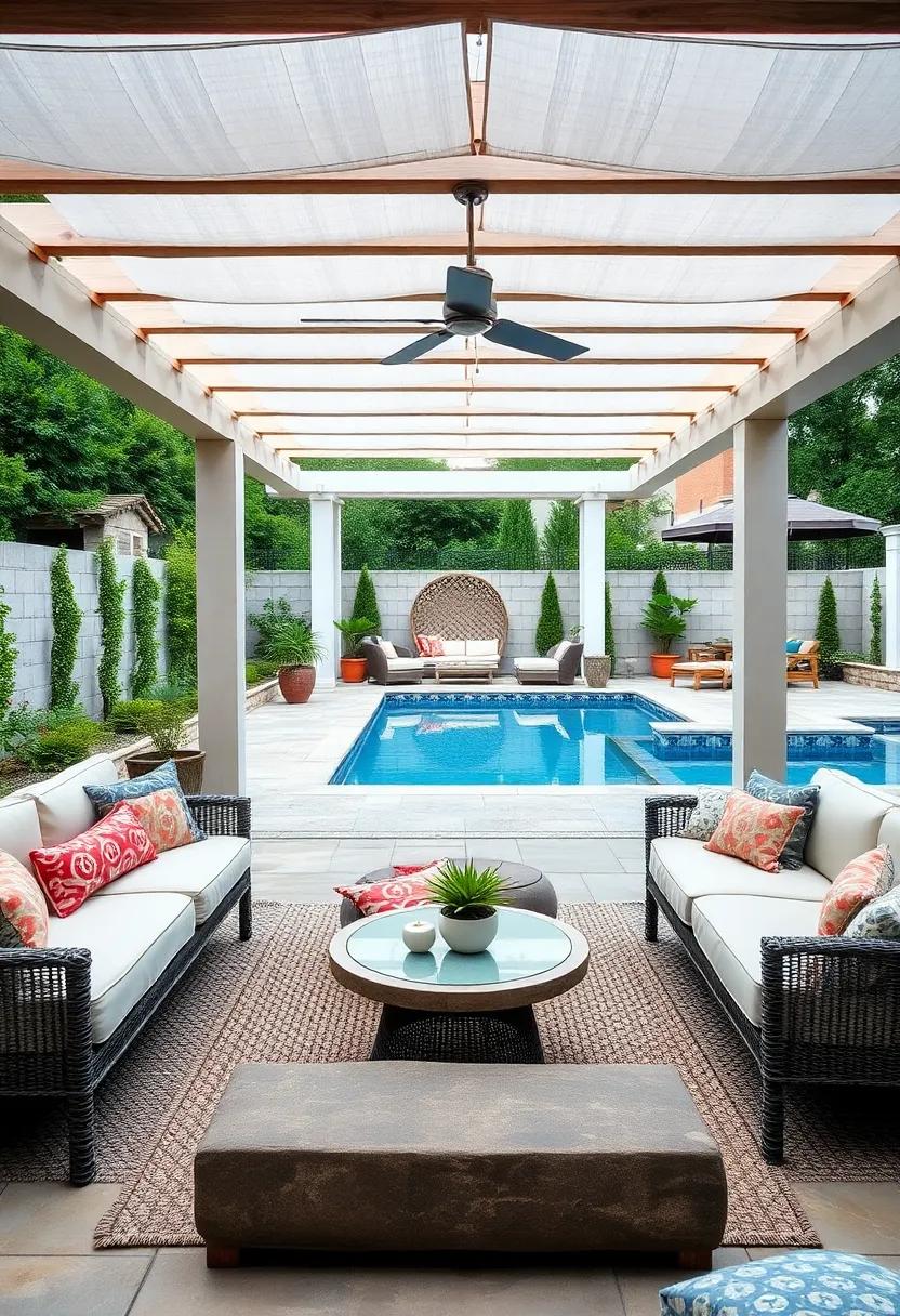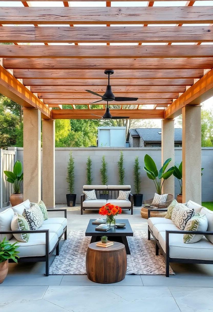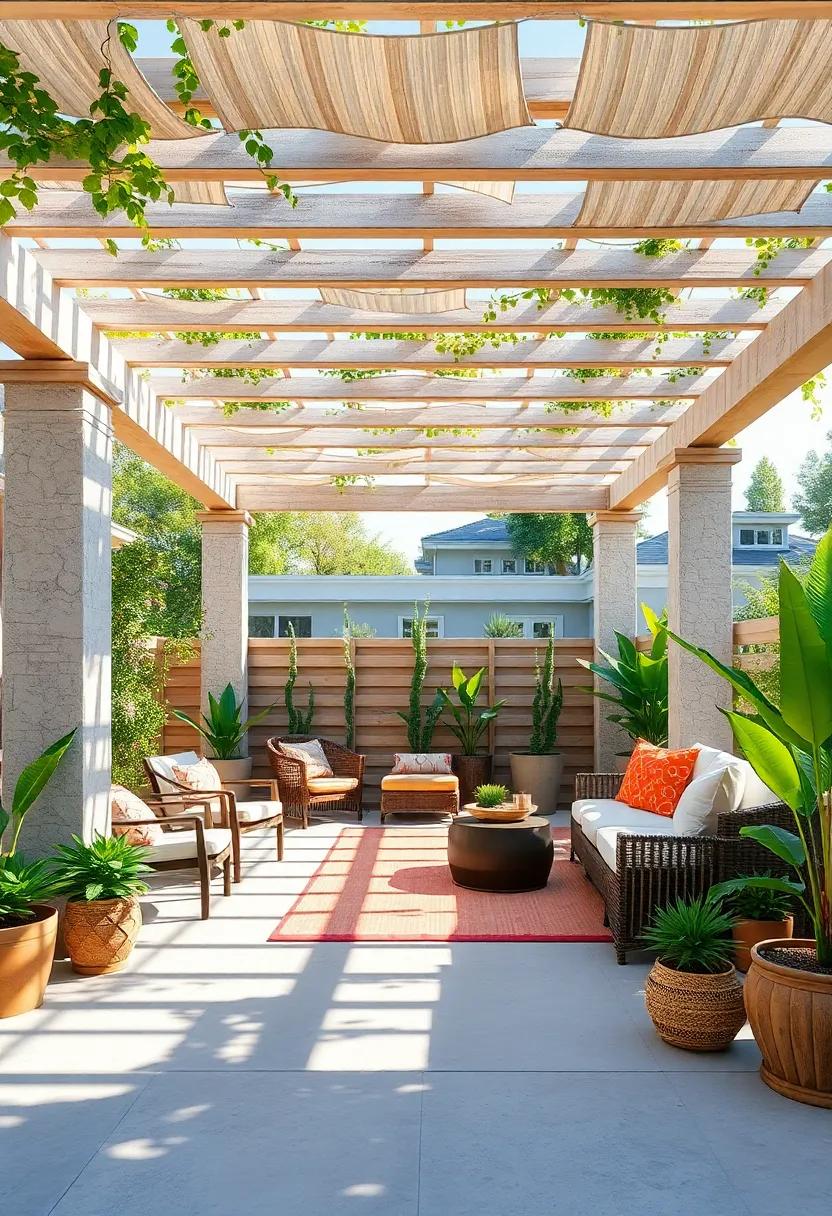 Enhance your outdoor retreat by incorporating draped fabrics and rustic pergolas that create a inviting atmosphere. Picture soft, flowing materials in serene colors gently billowing in the breeze, framing your lounge area and providing a sense of privacy and comfort. These fabrics can vary from sheer curtains that filter sunlight, to heavier textiles that become cozy layers during cooler evenings. Combine these elements with a pergola constructed from reclaimed wood or wrought iron, bringing a touch of natural charm while maintaining a sturdy structure. This harmonious blend encourages relaxation, making your outdoor space a captivating sanctuary.