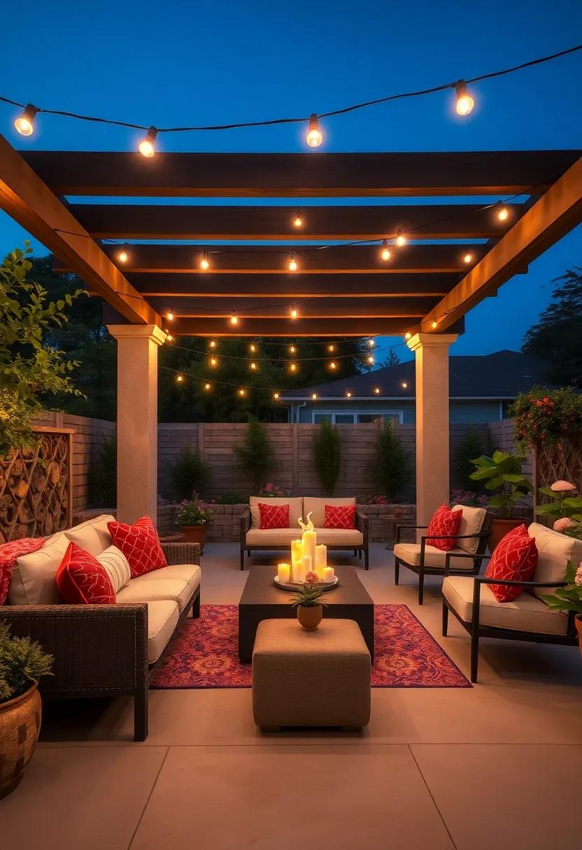 Romantic Evening Ambiances Under Twinkling Lights in Pergola Spaces