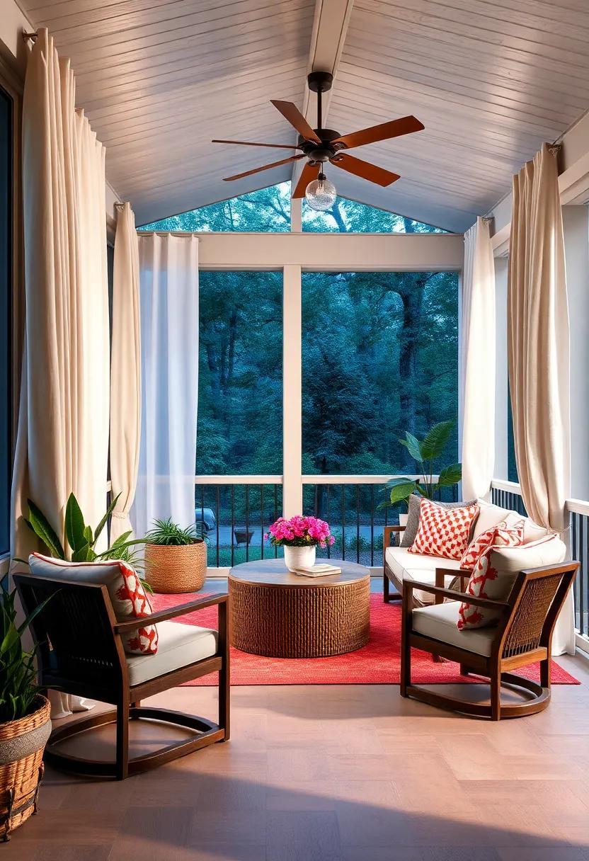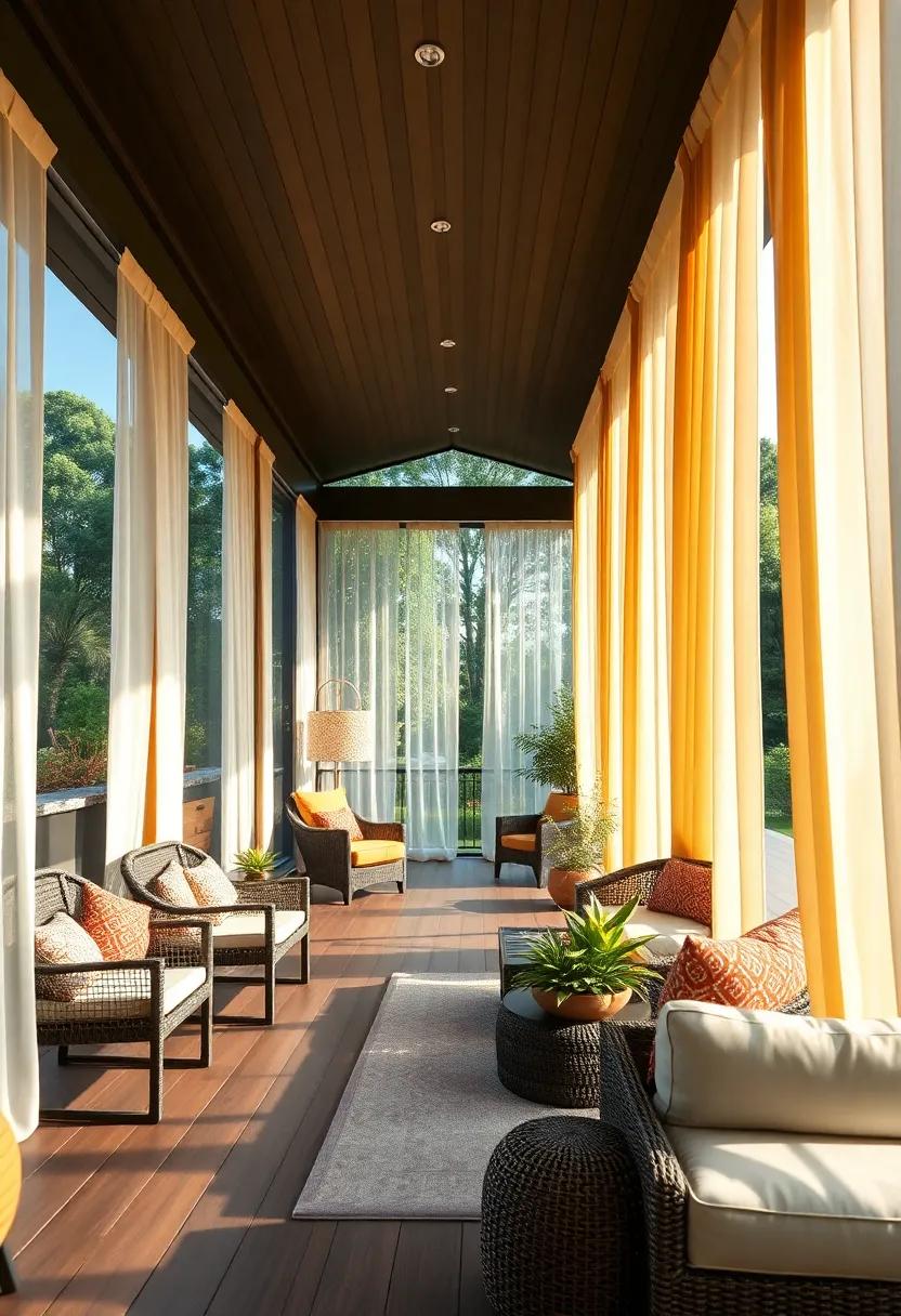 Ultimately, the clever use of outdoor curtains not only delineates functional areas but also enhances the overall aesthetic appeal of your screened porch. With the right choices, you can create a welcoming environment that invites both relaxation and socializing, making every inch of your outdoor space feel intentional and exquisite.
