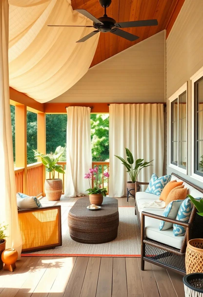 Pair your drapery with warm lighting options to elevate the ambiance.String lights or fairy lights draped along the edges of your porch can cast a magical glow, while table lamps with dimmers can provide focused illumination for evening gatherings. Incorporate candles or lanterns for a flickering warmth that invites relaxation. Experiment with lighting placements, creating focal points that draw the eye while ensuring the overall atmosphere remains soft and inviting: