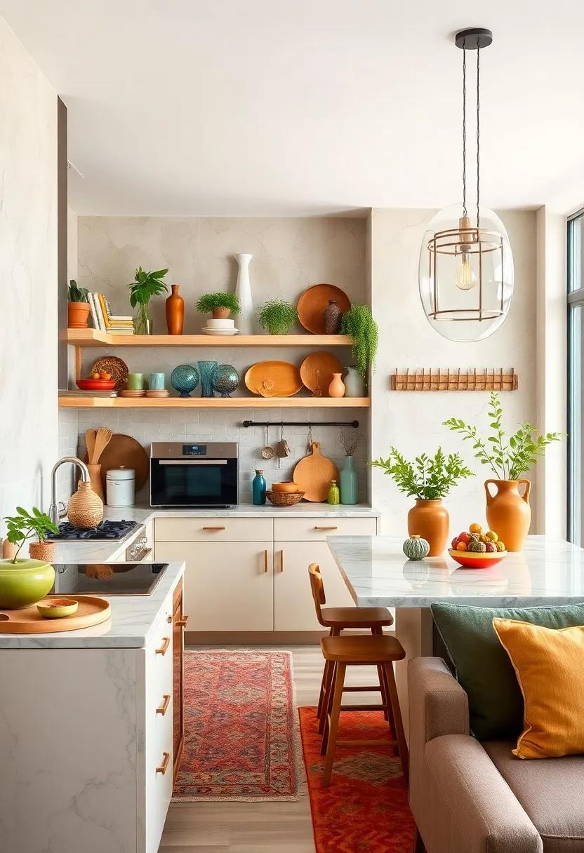 another transformative way to shift your decor is by layering accessories that mix materials and styles. Experiment with items like eye-catching ceramic vases, unique cooking utensils, or vintage finds that celebrate your culinary adventures. Incorporating a carefully curated selection of shelf decor can showcase your collectibles while bursting with character. To guide your choices, refer to this simple table for inspiration on key accessory themes: