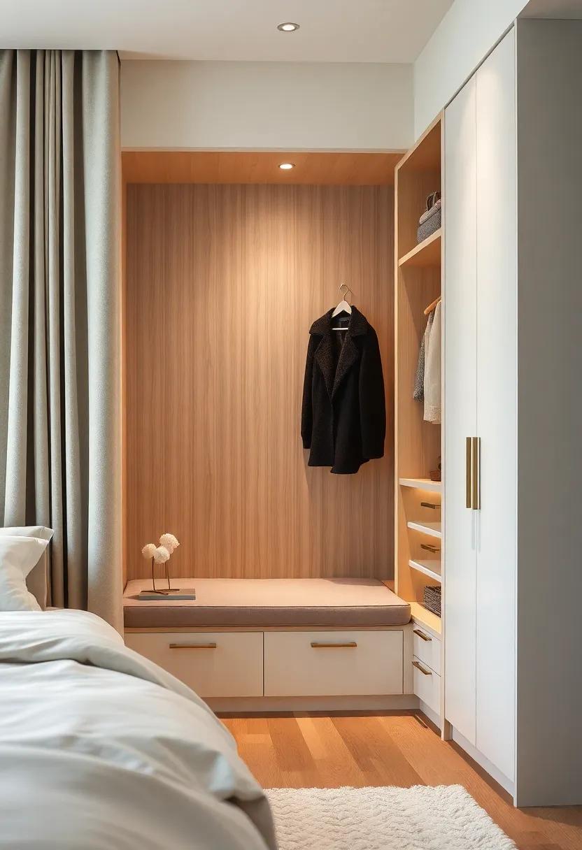 Moreover,integrating multi-functional furniture into your wardrobe area can elevate your storage game significantly. Think about built-in benches or ottomans that come equipped with compartments: