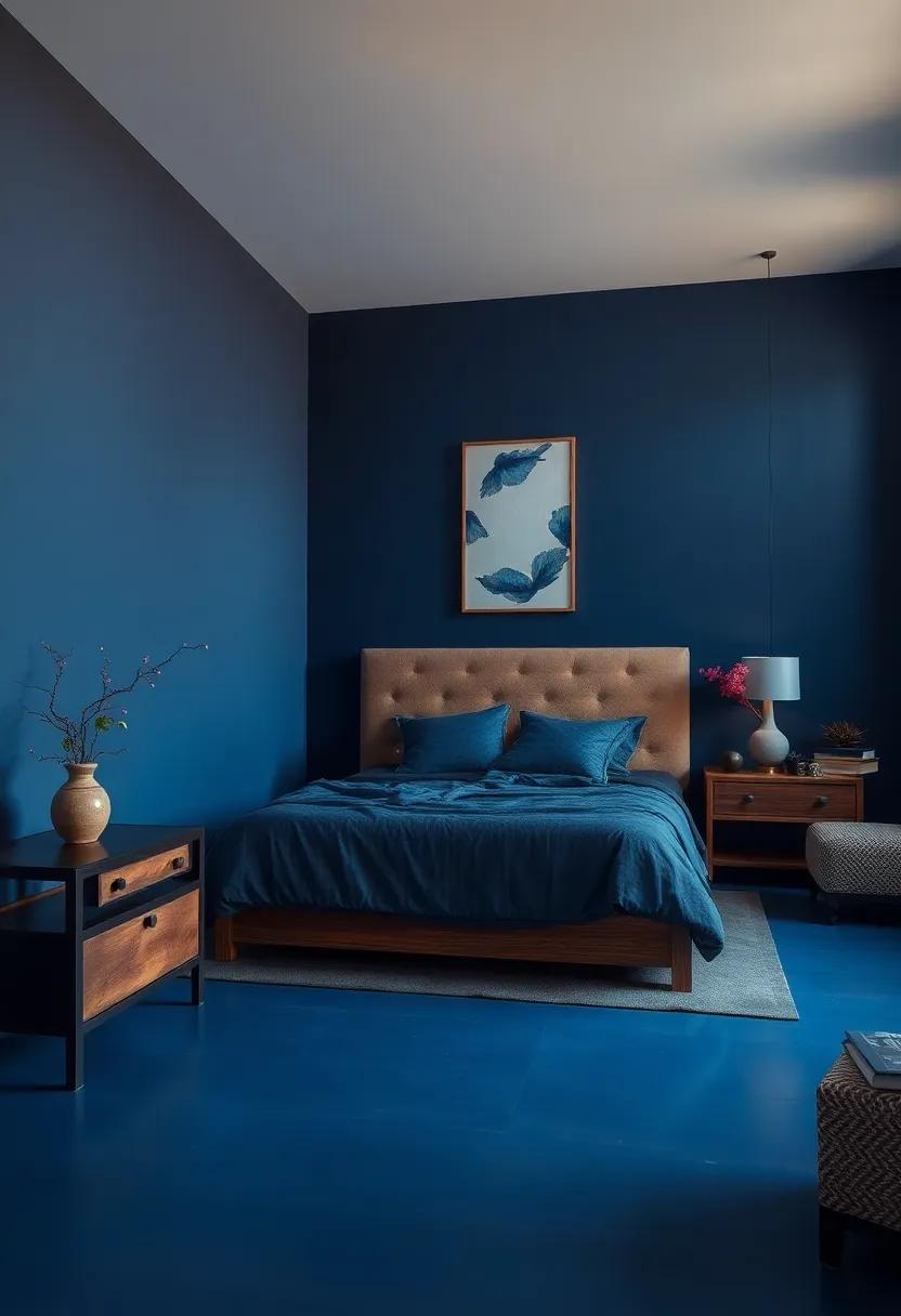 Inviting Calmness Through Deep Blue Hues for a Serene Bedroom Retreat