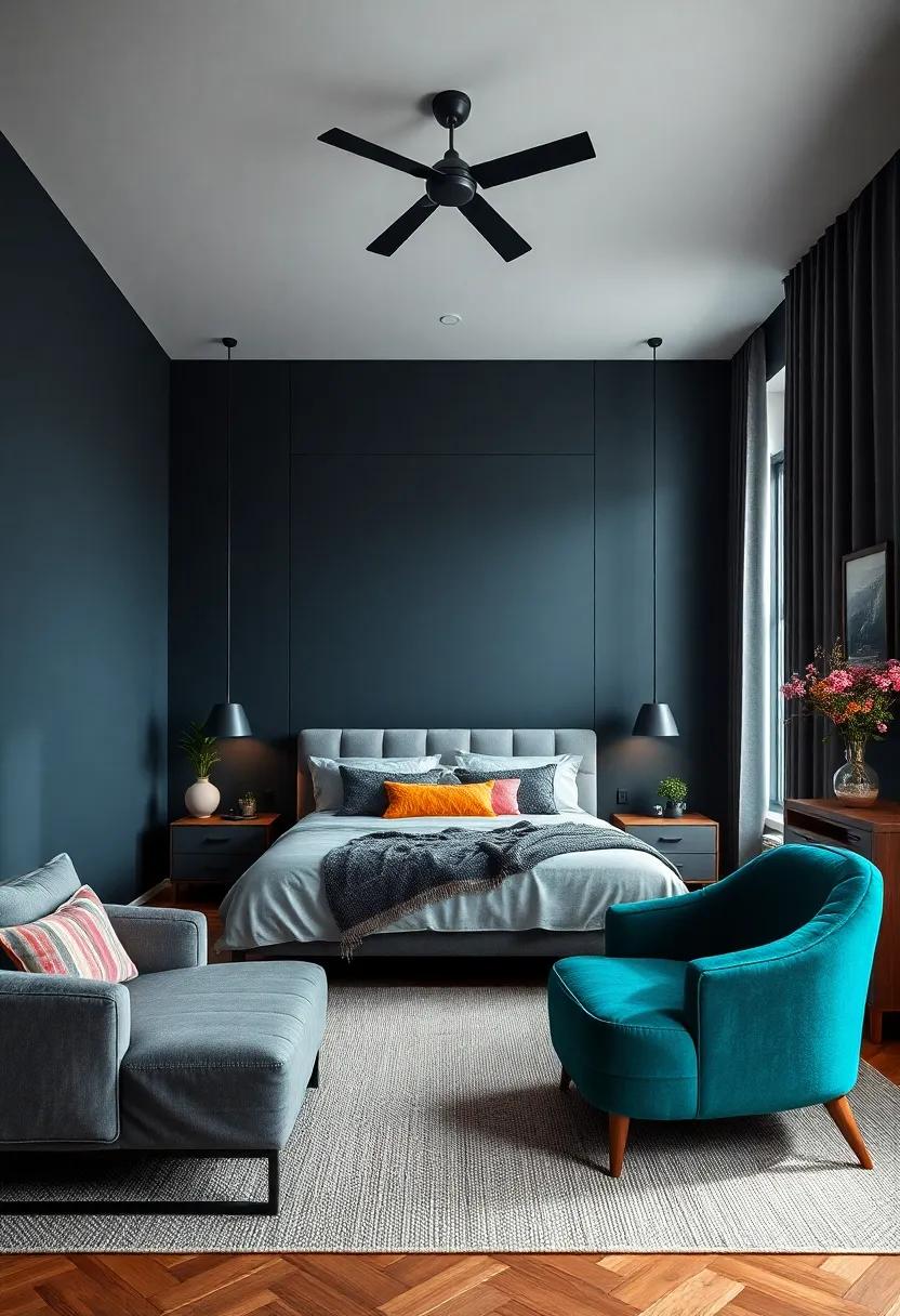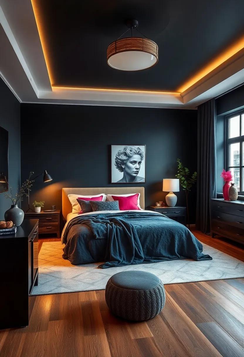 To create a captivating balance in your bedroom, consider pairing dark walls with vibrant furniture pieces that provide a striking contrast. Utilizing shades like deep navy, charcoal, or forest green allows for a dramatic backdrop, giving the room a sophisticated edge. To enhance this allure, choose furniture that pops: think furniture in rich jewel tones such as emerald green, ruby red, or sapphire blue. These colors not only lighten the mood of the room but also act as focal points, drawing the eye and enhancing the overall elegance of the space.