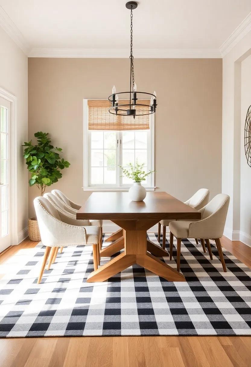 farmhouse Flair: Checkered and Striped Rugs for Cozy Dining rooms