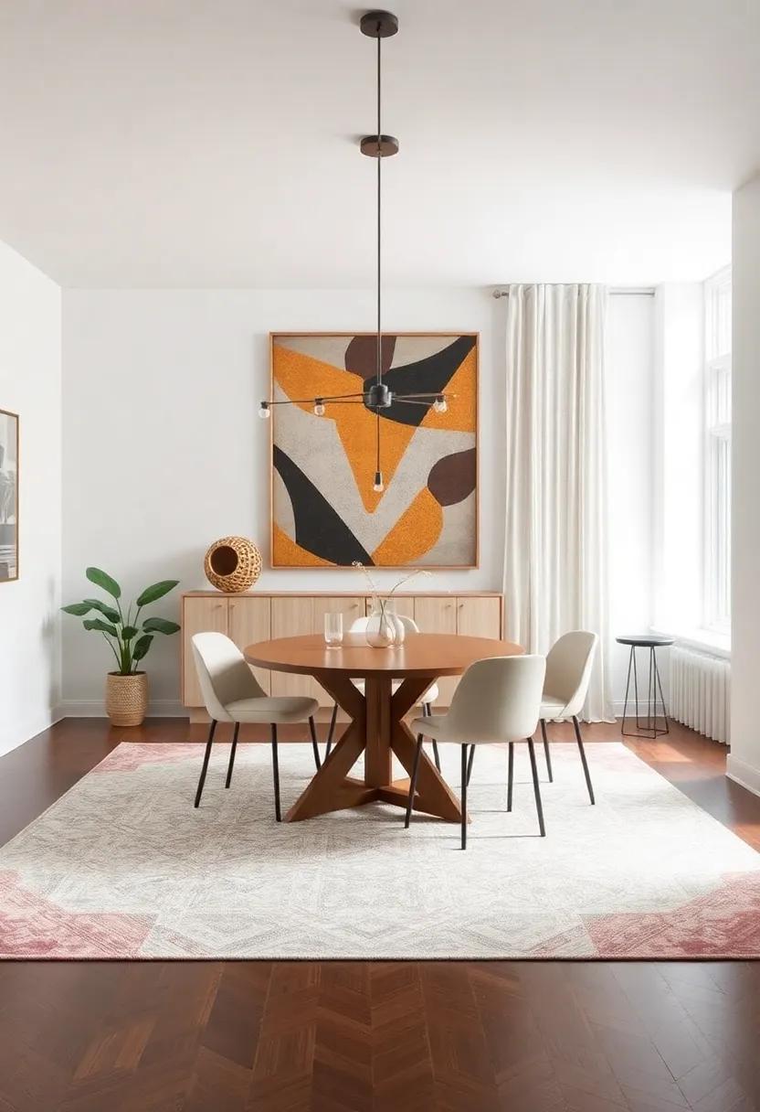 Integrating rug art into your dining room can create a captivating focal point that brings warmth and personality to the space. Choosing bold patterns can transform your dining experience, while subtle designs can enhance an already established theme. Consider pairing a vibrant kilim rug with sleek Scandinavian furniture for a striking contrast, or opt for a luxurious Persian rug to add an air of sophistication. The right choice can help establish a mood, whether you’re aiming for cozy elegance or bohemian charm.
