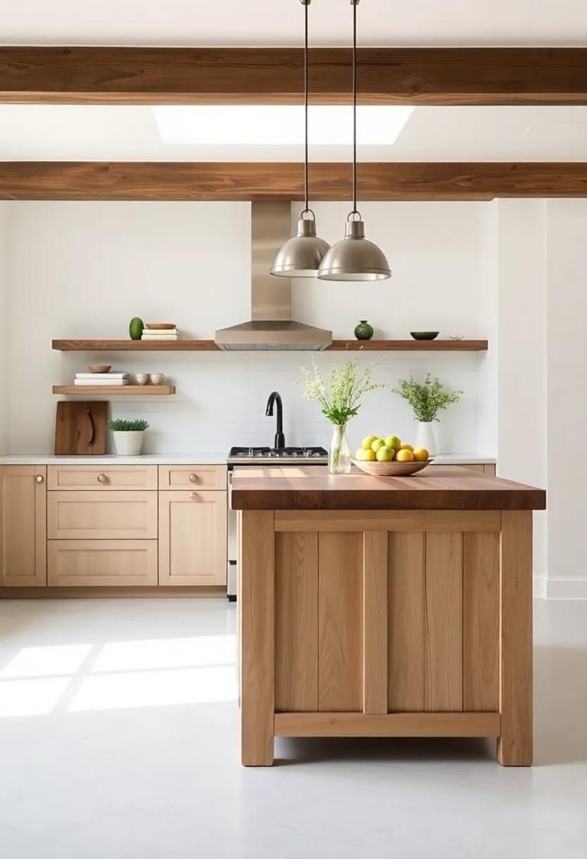- Choose a focal point: A large wooden table or an island with a stone top can anchor the space.