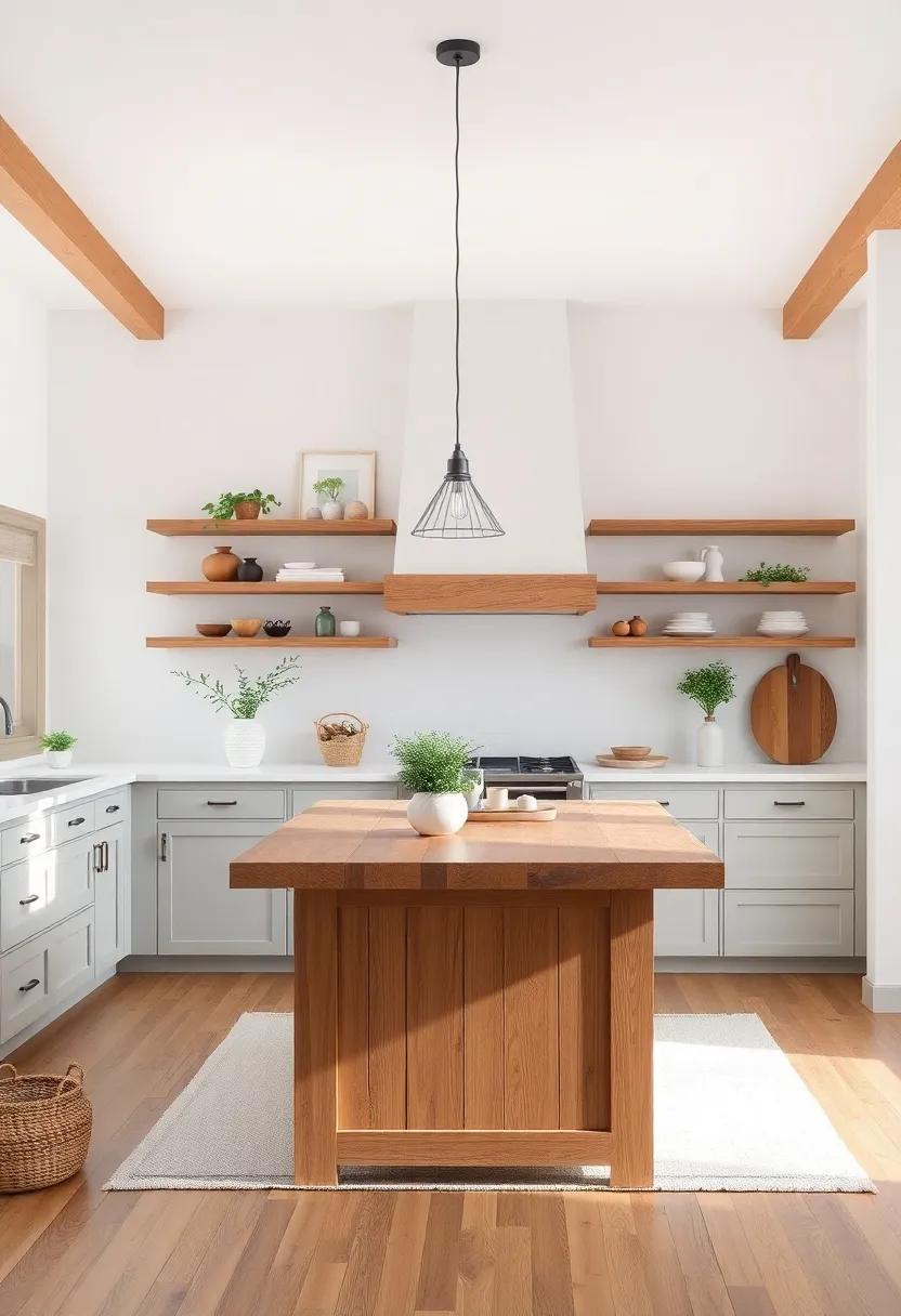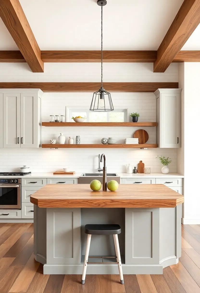 | Farmhouse | Natural wood, open shelving | Traditional or rustic designs |
