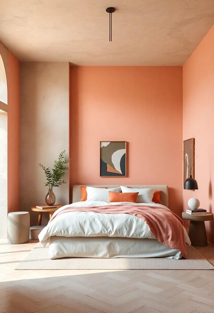 - Bedding: Opt for peach or coral-hued duvet covers and pillowcases to add a touch of color while maintaining a soothing ambiance.