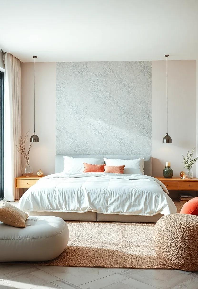 In a light-colored bedroom, the interplay of textures can create a sanctuary that invites relaxation and calm. Embrace a mix of materials to enhance the serene atmosphere while keeping the color palette soft and soothing. Consider incorporating:
