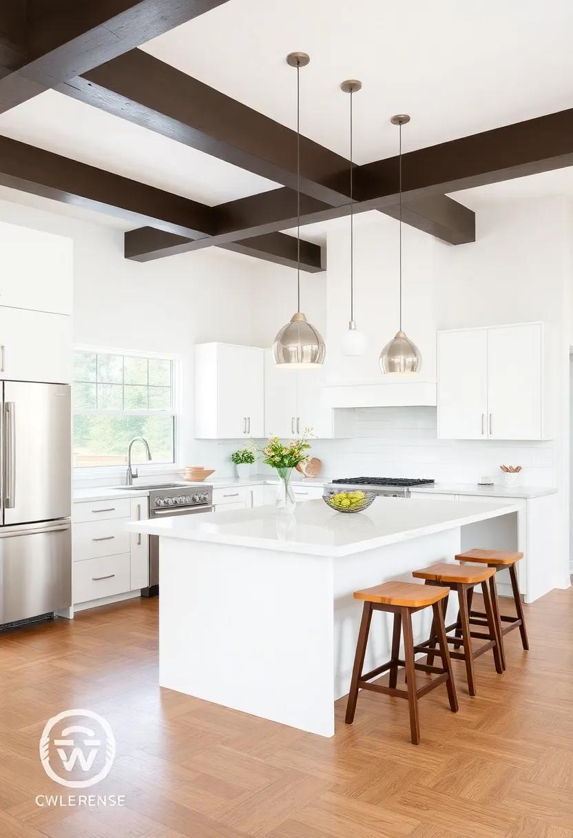 To really uplift your kitchen’s feel, integrate smart lighting solutions that adapt to your needs. With the help of dimmable LED fixtures and color-changing options, you can easily transition from vibrant cooking light to a soothing dinner atmosphere. Recessed lighting strategically placed across the ceiling offers a clean, streamlined look, while retaining the open concept vibe. Incorporating a statement chandelier over the dining area can also provide both elegance and a focal point, ensuring that your open space remains inviting and stylish.
