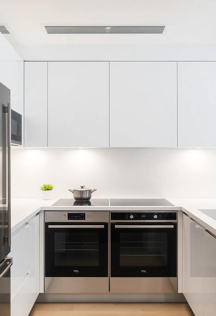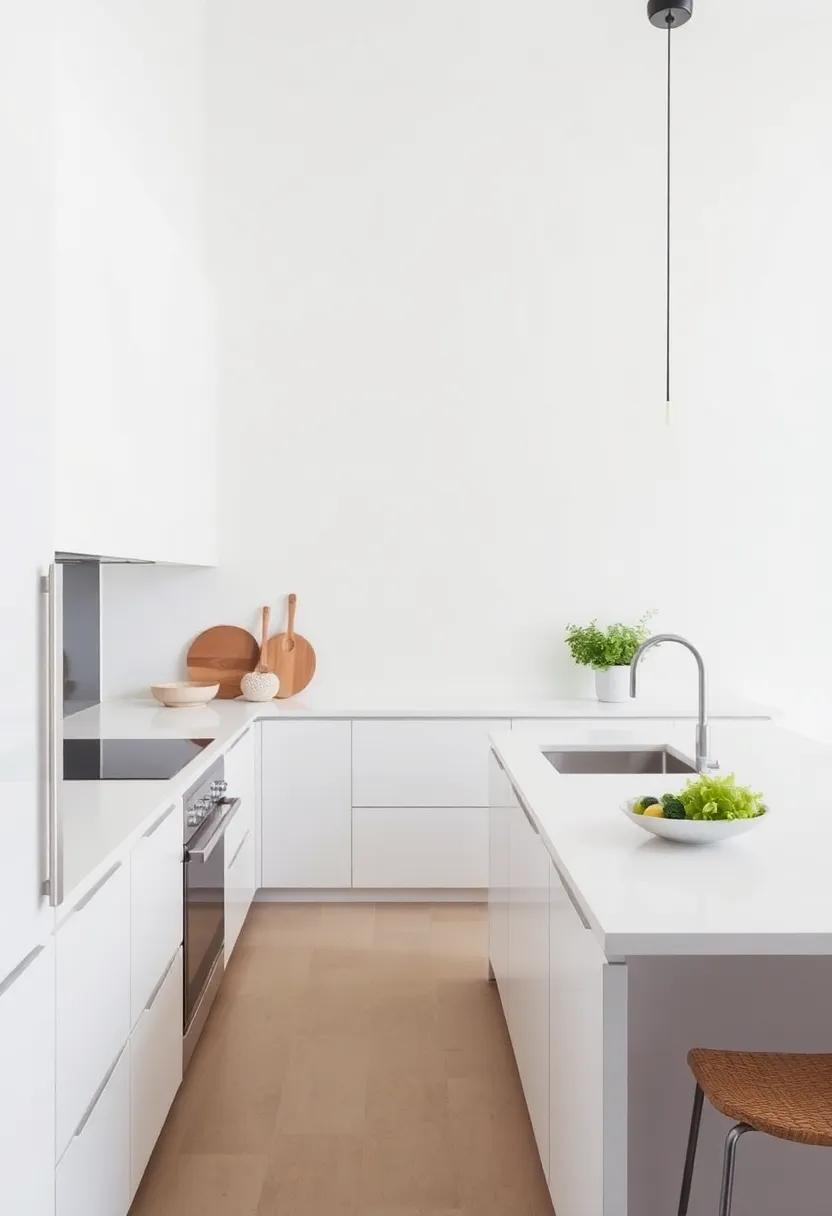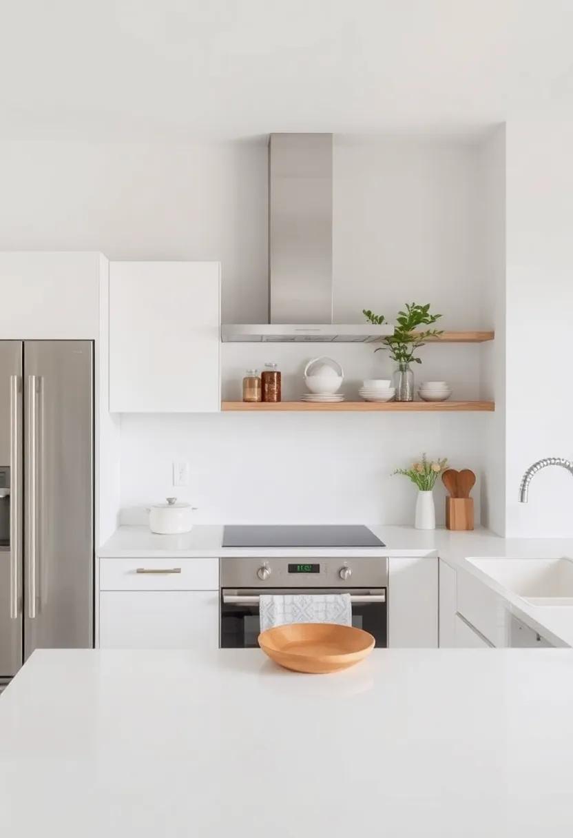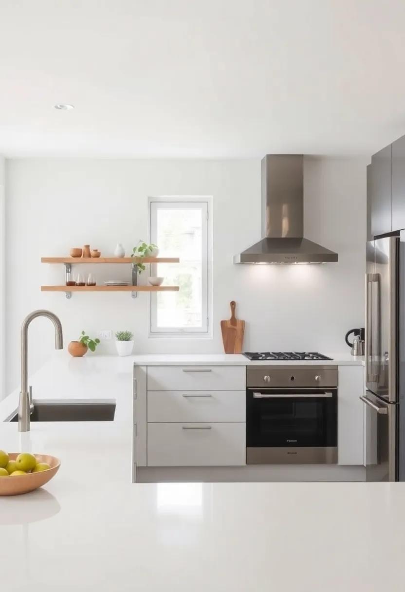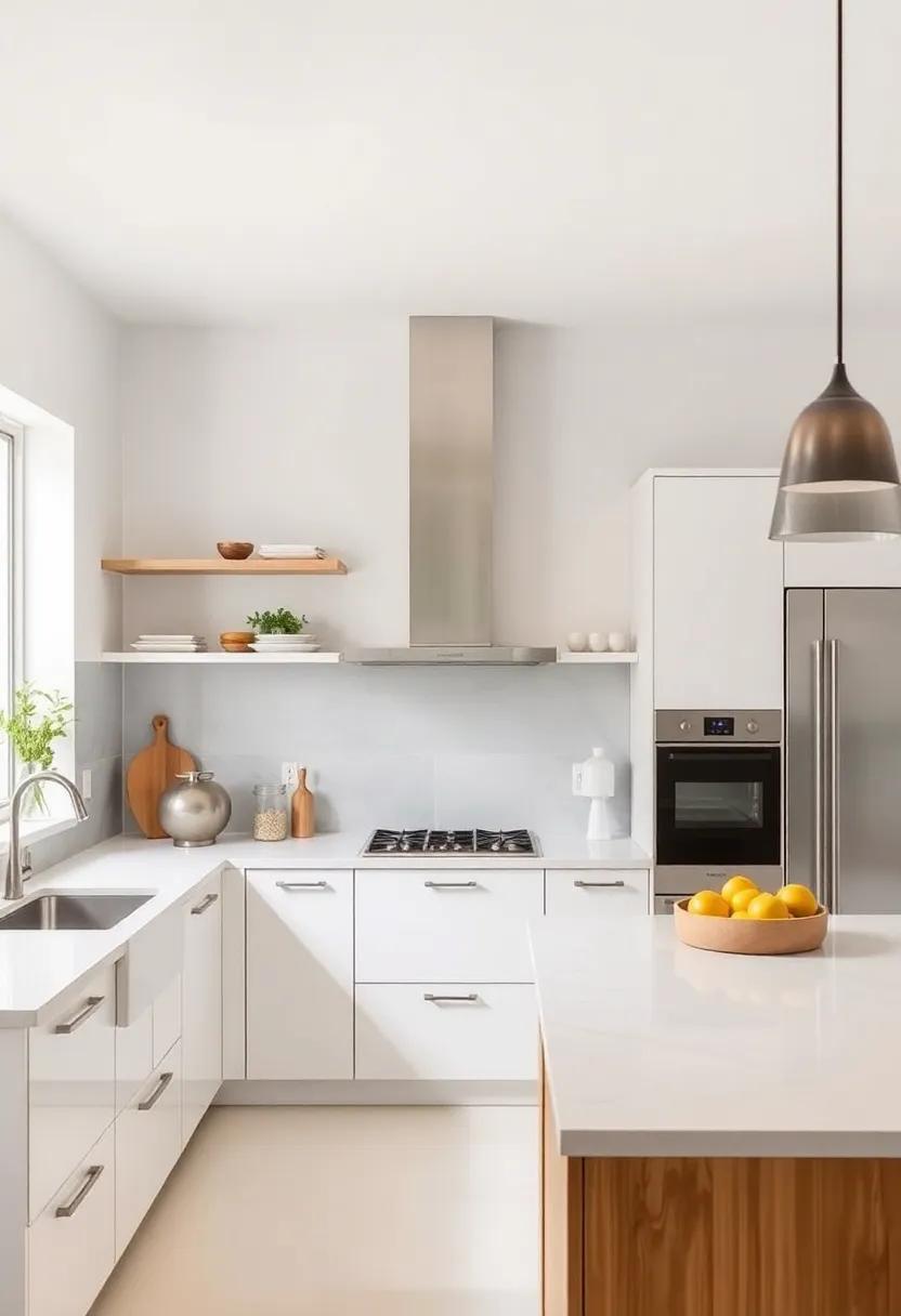 To enhance the streamlined look of your kitchen, it’s important to choose fixtures and appliances that complement the minimalist vision. Opt for integrated appliances that blend seamlessly into the cabinetry, and select lighting that highlights the workspace without overwhelming it. Creating designated zones for cooking, prep, and dining can further refine the space, promoting an organized workflow. Here are some design tips to embrace minimalism: