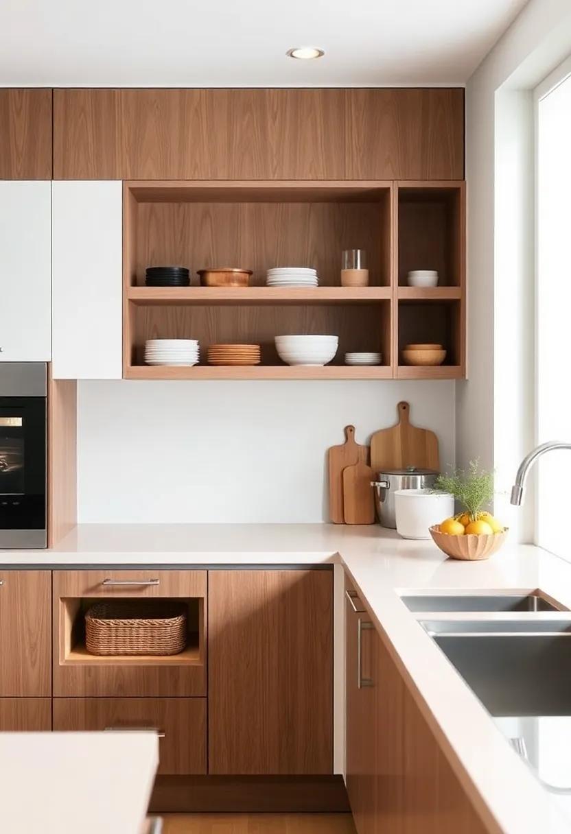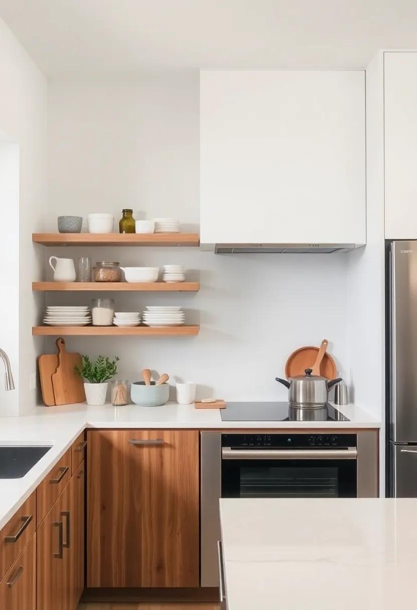Open shelving has emerged as a game-changer in modern kitchen design, merging practicality with aesthetics. By removing traditional cabinetry and replacing it with open shelves, you not only enhance the visual appeal of your culinary space but also create an inviting atmosphere that encourages creativity and interaction.These shelves allow for the display of your favorite culinary wear, from artisanal dishware to vibrant ceramic bowls, making functional items a focal point. Consider styling your shelves with elegant groupings, ensuring a mix of heights and textures for a layered look that captivates the eye.