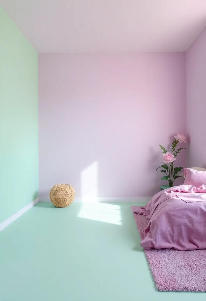 When designing a room that celebrates both mint green and purple, selecting the right flooring can significantly enhance the overall aesthetic. consider opting for light wood or laminate flooring that complements these vibrant colors while providing a warm,inviting feel. The natural texture of wood in a pale tone can beautifully balance the boldness of purple and the freshness of mint green.Alternatively, a neutral-toned carpet can add softness and warmth underfoot, perfect for lounging or studying. texture is vital, so select options that add depth, like a plush shag or a patterned area rug that incorporates both colors in subtle ways.