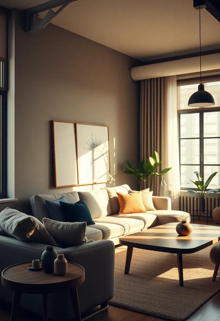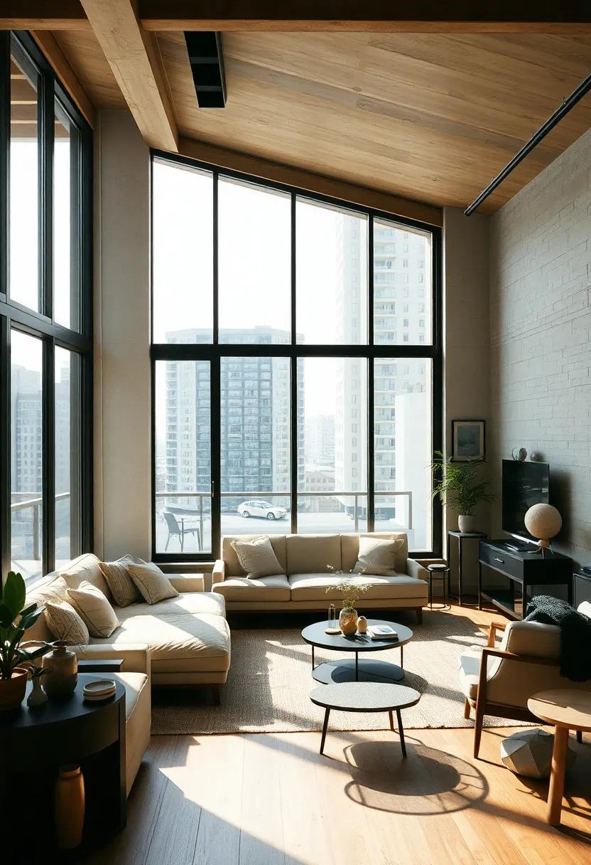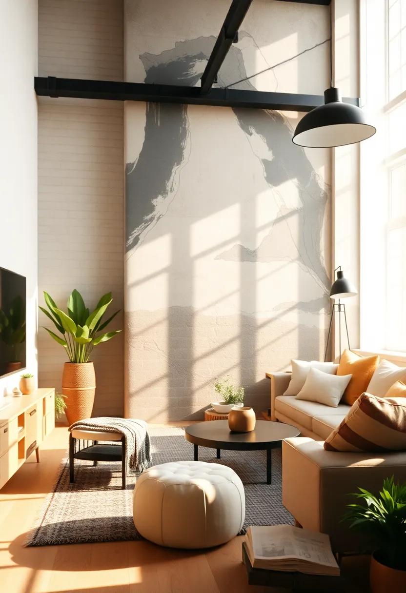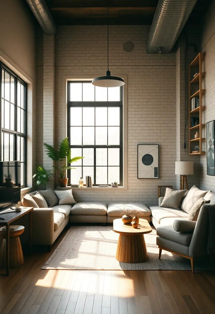 Incorporating elements such as wood furnishings or metal accents can further elevate the overall aesthetic, creating a dynamic interplay between raw materials. The result is a living room that feels both contemporary and timeless, perfectly encapsulating the essence of urban living.