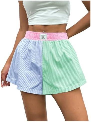 Floerns Women’s Striped Print Letter Patched Elastic Waist Colorblock Summer Shorts