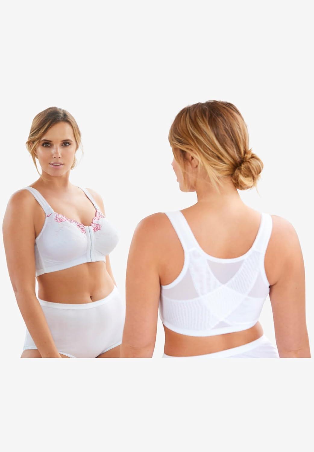 Comfort Choice Women’s Plus Size Front-Close Embroidered Wireless Posture Bra Overview