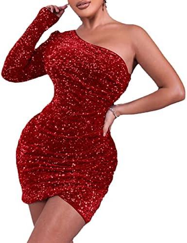 Overview of the KIRJAUDU Women Sexy One Shoulder Long Sleeve Sparkly Sequin Mini Dress