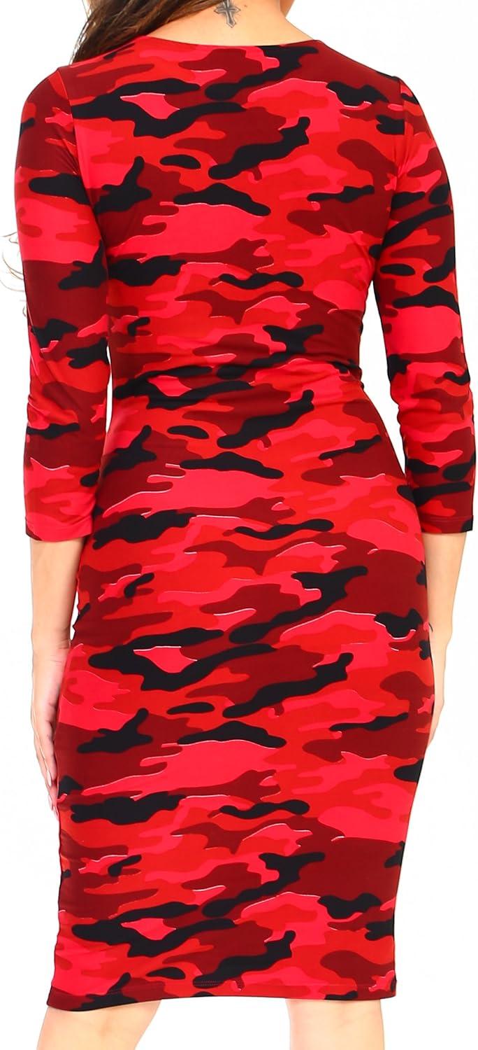 This dress truly shines in its versatility, making it a staple for a variety of occasions. Its fitted silhouette paired with the flattering 3/4 sleeves creates a chic canvas for accessorizing. We love pairing it with sleek heels and statement jewelry for an elegant night out at a party or club. Conversely, swapping heels for cozy flats or sneakers instantly transforms it into a relaxed, casual look perfect for brunches or shopping trips. The mid-length cut and breathable fabric also mean it works well layered under coats or cardigans during cooler months, yet remains light enough for springtime wear.