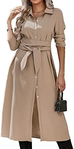 Elevate your wardrobe with this stylish long shirt dress designed for casual outings. Crafted from 100% polyester, the fabric is not only soft but also lightweight, making it ideal for all-day wear. The tie waist feature allows you to adjust the fit to your liking, offering both comfort and a flattering silhouette. With its long sleeves and elegant beige color, this dress can be dressed up or down depending on the occasion. Its dimensions of 14.02 x 12.48 x 1.77 inches and light weight of approximately 14.39 ounces enhance its versatility, making it easy to pack for trips or simply wear throughout the day.
