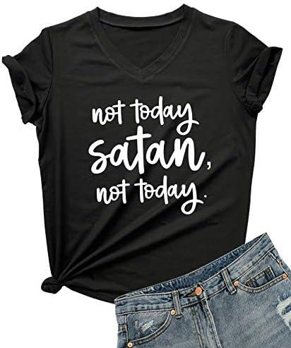 DANVOUY Women Not Today Satan V-Neck Graphic T-Shirt Casual Tops Tees